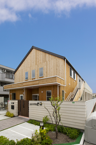 正面より。 外壁は木を張っています。