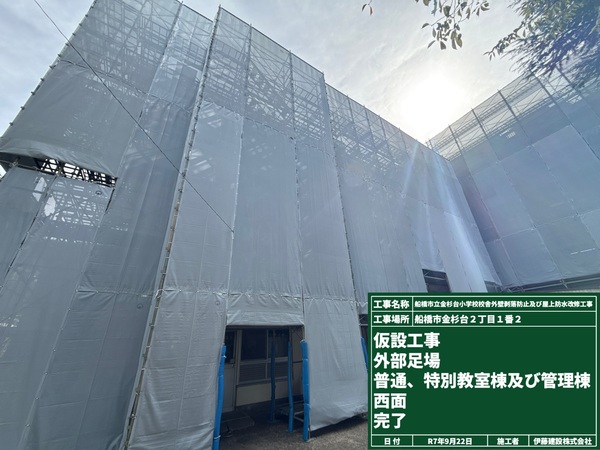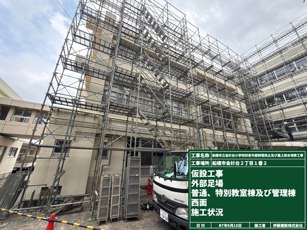船橋市立金杉台小学校校舎外壁剥落防止及び屋上防水改修工事 工事始まりました!